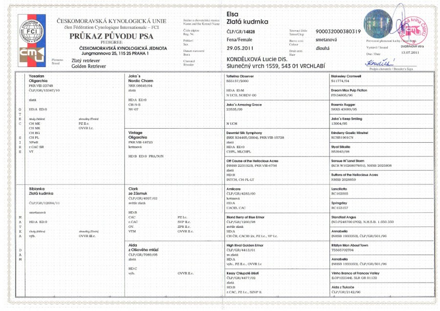 Matka: Aida (zvaná Lejdy) z Olšového mlází Otec: Clark ze Zásmuk