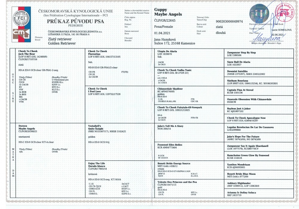 Matka: Doreen Maybe Angels Otec: Cheek to Cheek Jack the Bear