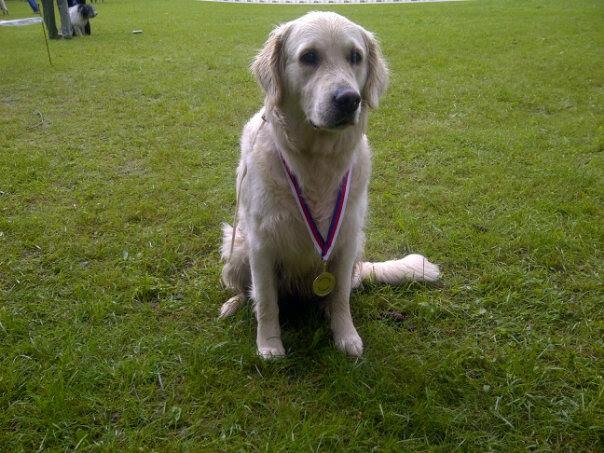 04.06.2013 18:54V sobotu 2.6.2013 jsem se vydala s Elsou Zlatou kudrnkou na Oblastní výstavu, která byla v Praze - Kunraticích. Bohužel nám počasí vůbec nepřálo. Celou výstavu pršelo, takže jsem vystavovala zmoklou slepičku :-). Nicméně mi Elsa udělala obrovskou radost a stala se Oblastní vítězkou. Dostala krásný posudek : dobře stavěná fena, 3 roky stará ( zde došlo ke špatnému výpočtu - 2 roky ), silná kostra, dobrý habitus, pěkná hlava, tmavé oko, ucho dobře nasazeno, nepatrně strmější vzadu, pevný hřbet, prostorný hrudník. Ocenění V1, titul : VT,OV.