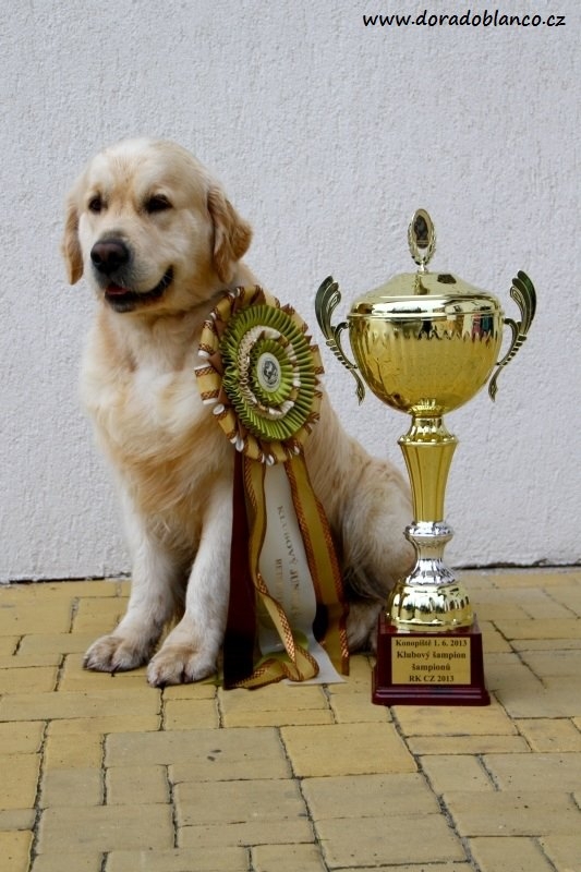 Další výborné zprávy o otci našich budoucích štňátek " Rockym " Bonett Bride to Dorado Blanco - 2.6.2013 Klubová výstava RK na Konopišti. Rocky se stal vítězem s oceněním Klubový Šampion Šampionů RK CZ 2013. Moc gratulujeme.